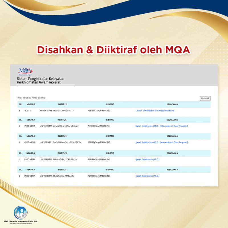 Ya, semua pengajian yang ditawarkan oleh GWS Education International Sdn. Bhd. diiktiraf oleh JPA, MQA dan MMC.